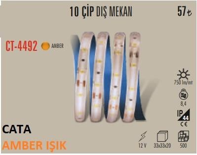 💡 Cata CT-4492 Dış Mekan Amber Renk Silikonlu Şerit LED (5 Metre), dış mekan koşullarına dayanıklı silikon kaplamasıyla uzun ömürlü ve güvenli bir aydınlatma çözümü sunar. Amber ışığı sayesinde sıcak ve dekoratif bir atmosfer oluşturur.